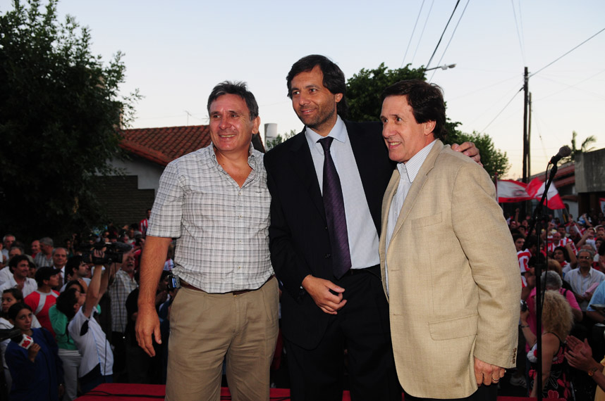 El titular de la comisión de apoyo Sergio Míguez, el abogado del club Alejandro Taraborrelli y el intendente Díaz Pérez.