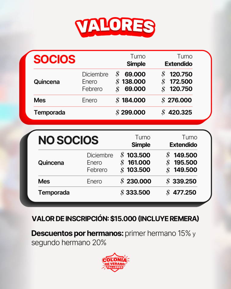 Aquellos padres que lo deseen, cuentan con la posibilidad de un día de prueba gratis en la colonia del Club Atlético Talleres para sus hijos.